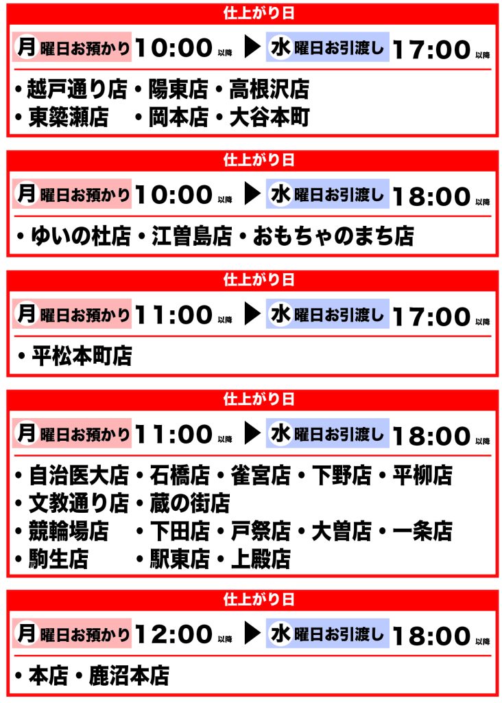 工場も休業の為仕上がり日が変更となります。